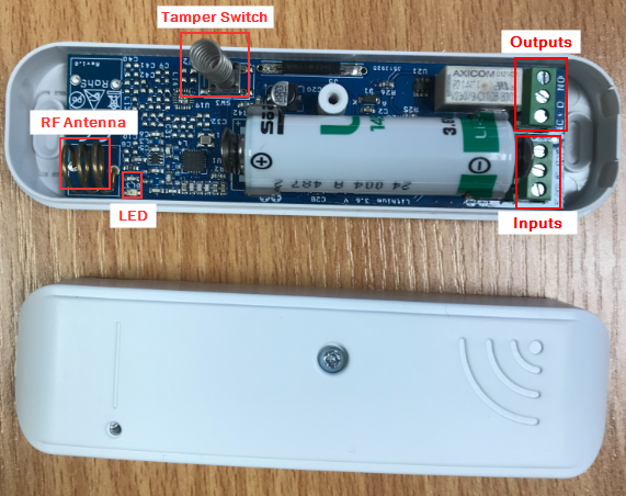 - Connect the battery to the door contact and within 5 seconds of connecting the battery, press the tamper switch twice