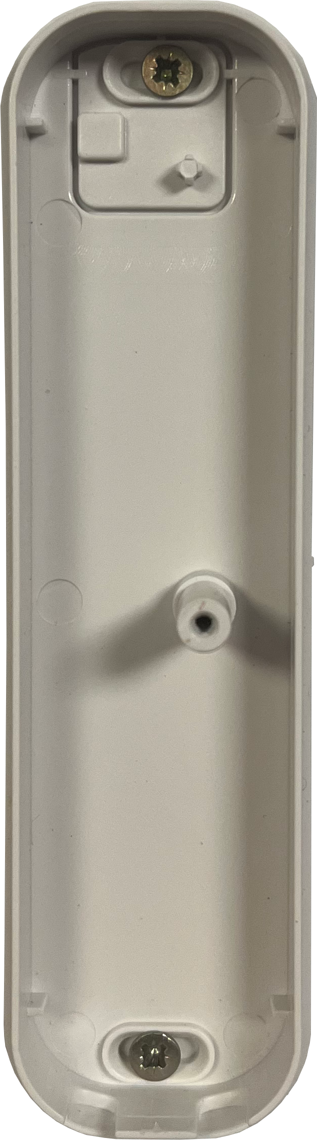 - Screw/mount the casing to a flat surface, such as a door or window (making sure to note which side of the contact has a raised part indicating placement of the magnet as shown below)