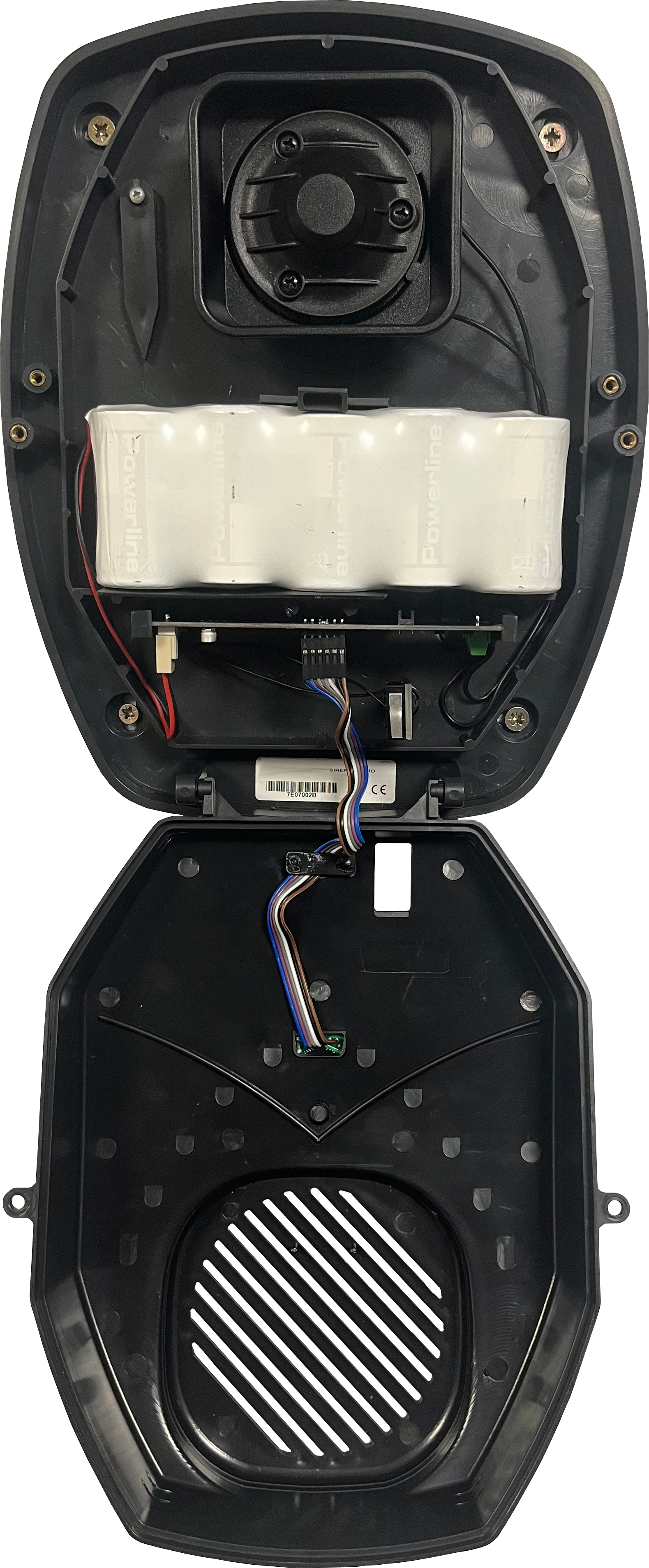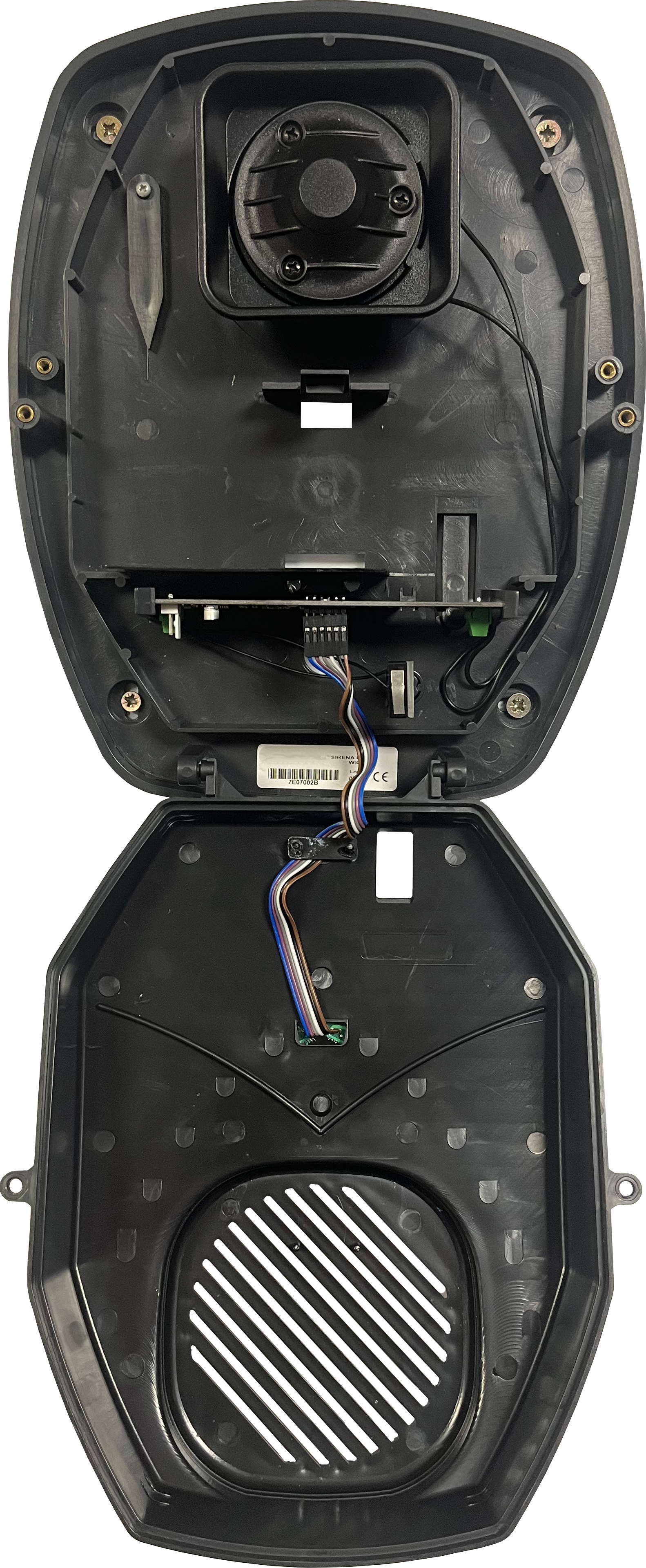 - Place the front cover onto the siren and screw it down to secure the siren