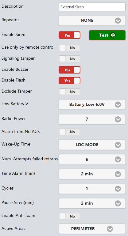 - Cycles - The number of times the siren will re-activate (e.g. TimeAlarm=2min, Cylces=3 - Siren will activate for 6 minutes)